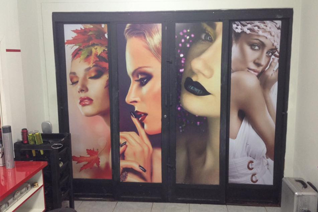 Fachada em lona e ACM • Luminoso • Adesivação • Adesivos de recorte • Adesivação de veículo • Adesivação em vitrines, portas de vidro e divisórias • Banners, faixa e outros.
